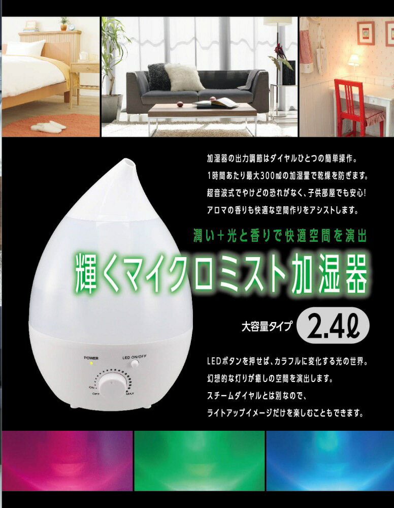 福昌 輝くマイクロミスト 加湿器 大容量 2.4L ホワイト FS-374