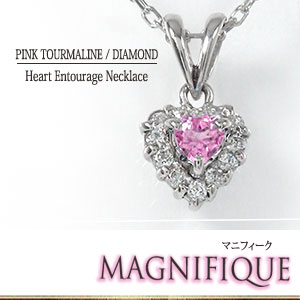 取り巻き ピンクトルマリン ダイヤモンド ネックレス チャーム プラチナ/ MAGNIFIQUE/マニフィーク【工房直販】商品番号- 150804wc01 ◆フランス語で「華やか、素晴らしい…」を意味する言葉…。