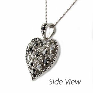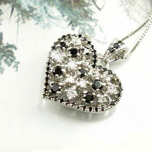 ダイヤとブラックダイヤのコントラストが美しいダイヤモンドハートネックレス。